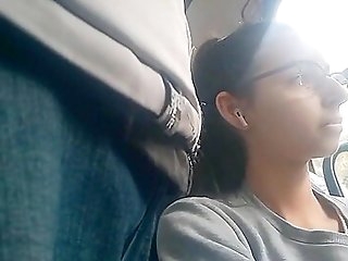Nerd Girl Flashing Bulge in Bus